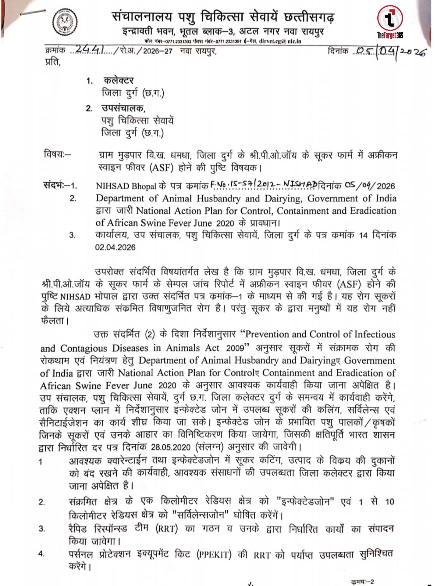 African Swine Fever : छत्तीसगढ़ के दुर्ग जिले से एक चिंताजनक खबर सामने आ रही है। धमधा विकासखंड के अंतर्गत आने वाले ग्राम मुड़पार में स्थित एक निजी सूकर फार्म में ‘अफ्रीकन स्वाइन फीवर’ (ASF) के संक्रमण की आधिकारिक पुष्टि हुई है। जैसे ही भोपाल स्थित राष्ट्रीय उच्च सुरक्षा पशुरोग संस्थान (NIHSAD) से लैब रिपोर्ट पॉजिटिव आई, जिला प्रशासन और पशु चिकित्सा विभाग तत्काल सक्रिय हो गया है। संचालक, पशु चिकित्सा सेवाएं नवा रायपुर द्वारा इस संबंध में औपचारिक पत्र जारी कर दिया गया है, जिसके बाद प्रभावित फार्म और उसके आसपास के इलाकों में हड़कंप की स्थिति है। यह वायरस सूकरों के लिए अत्यंत घातक माना जाता है, जिससे उनकी मृत्यु दर बहुत अधिक होती है।