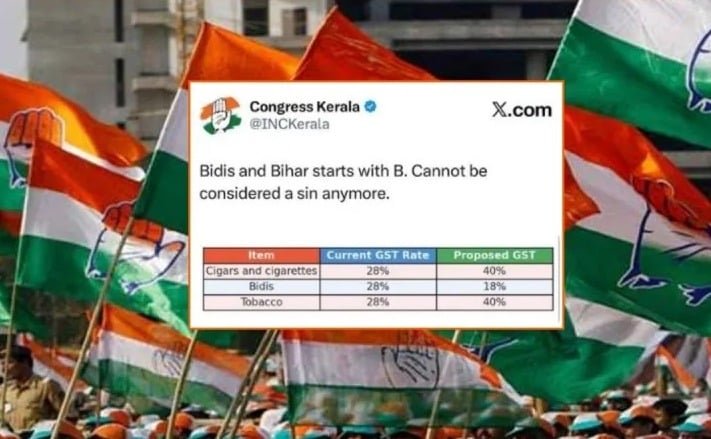 केरल कांग्रेस की सोशल मीडिया टीम ने X (पूर्व में ट्विटर) पर एक ग्राफिक पोस्ट किया था, जिसमें टैक्स नीति की आलोचना करते हुए लिखा गया था: “B फॉर बीड़ी, B फॉर बिहार” इस ग्राफिक में केंद्र सरकार की जीएसटी दरों की तुलना करते हुए बताया गया कि बीड़ी पर कर को 28% से घटाकर 18% कर दिया गया है, जबकि सिगरेट पर 28% से बढ़ाकर 40% किया गया है। हालांकि, इस पोस्ट में “बीड़ी” और “बिहार” को एक ही पंक्ति में जोड़कर जिस तरह से प्रस्तुत किया गया, उसे लेकर सोशल मीडिया पर भारी विरोध देखने को मिला। कई नेताओं और आम लोगों ने इसे “बिहार राज्य का अपमान” बताया और कांग्रेस नेतृत्व से तत्काल माफी की मांग की।