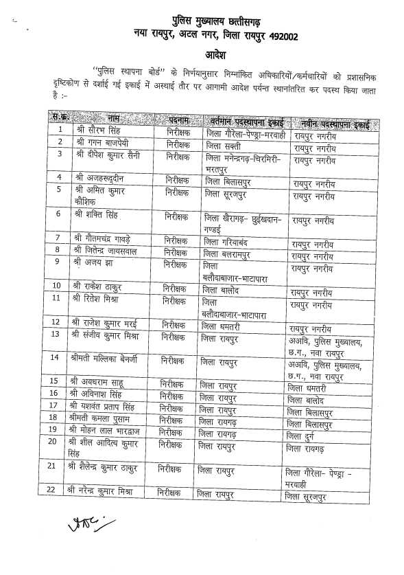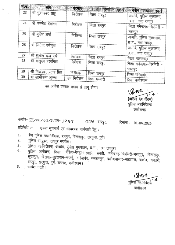 रायपुर से अन्य जिलों में रवानगी: गरियाबंद और बलरामपुर को मिले नए चेहरे