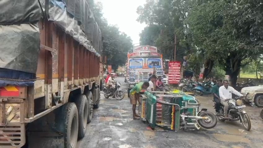 Ambikapur News : शहर की खस्ताहाल सड़कों ने एक बार फिर यातायात व्यवस्था को पटरी से उतार दिया। शनिवार को अंबिकापुर–बनारस मुख्य मार्ग पर एक ई-रिक्शा पलट जाने से लंबा जाम लग गया। ई-रिक्शा में भारी मात्रा में सामान भरा हुआ था, जिसे निकालने में चालक और आसपास के लोगों को कड़ी मशक्कत करनी पड़ी। इस दौरान सड़क पर वाहनों की लंबी कतारें लग गईं और यात्री घंटों तक फंसे रहे।