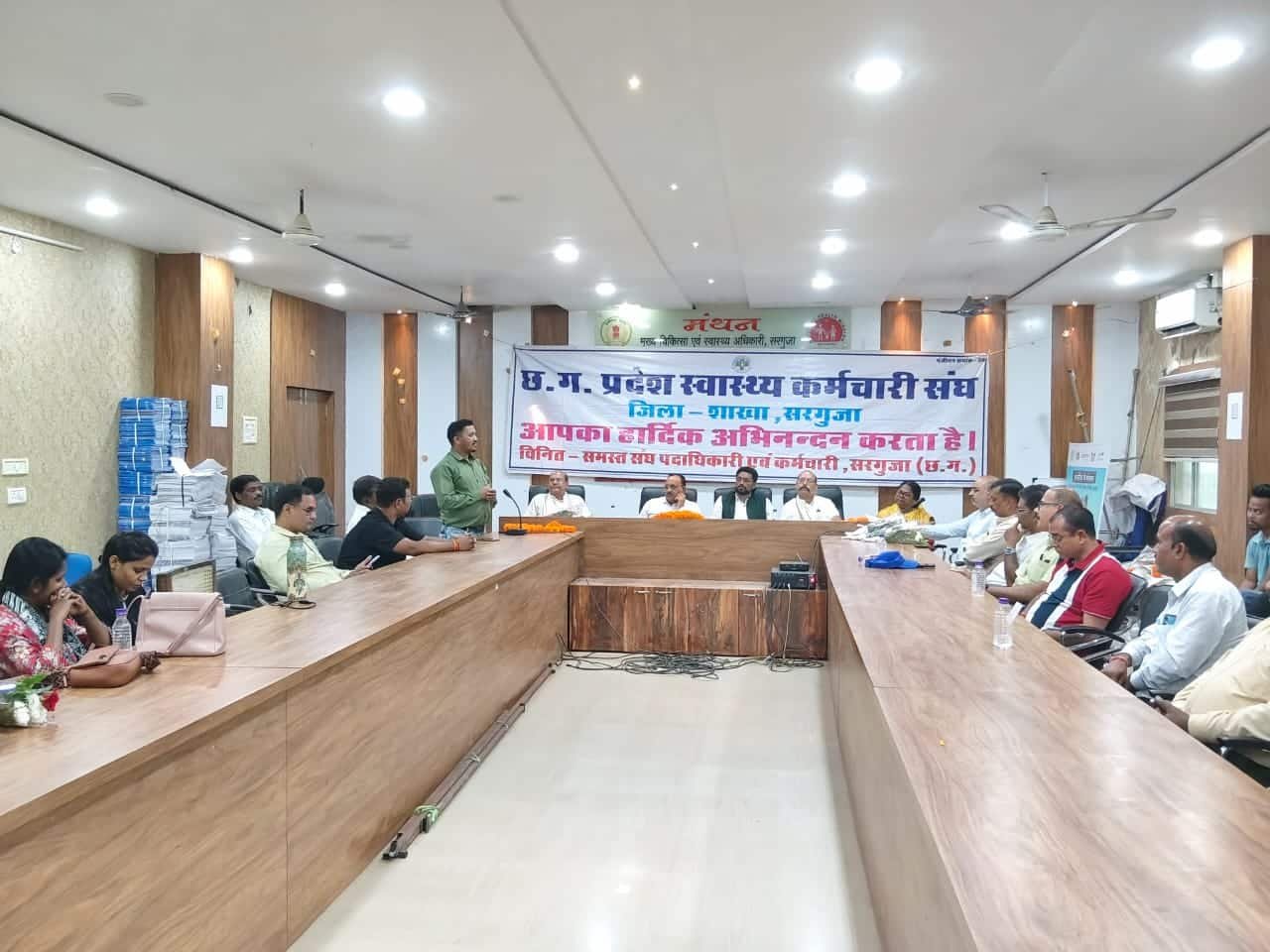 इस अवसर पर जिला अध्यक्ष धनेश प्रताप सिंह, तूफान अली, श्याम कम तिवारी, दुर्गेश त्रिपाठी, हेमंत सिंह मरावी, शैलेंद्र गुप्ता, संजय पांडे, किरण सोनी, किरण सिन्हा, लक्ष्मी बैरागी, उदय कुमार पडो सहित सरगुजा जिले के सभी प्रांतीय पदाधिकारी, ब्लॉक अध्यक्ष एवं बड़ी संख्या में स्वास्थ्य कर्मचारी उपस्थित रहे।