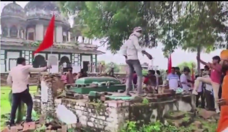 सूचना के आधार पर पुलिस ने ईदगाह के चारों ओर बैरिकेडिंग की थी। हालांकि, लाठी-डंडों से लैस भीड़ बैरिकेड्स तोड़कर अंदर घुस गई। हिंदू महासभा के नेता मनोज त्रिवेदी स्वयं मकबरे के अंदर पहुंचे और पूजा-पाठ किया। कुछ युवकों ने मकबरे की छत पर चढ़कर भगवा झंडा फहरा दिया।