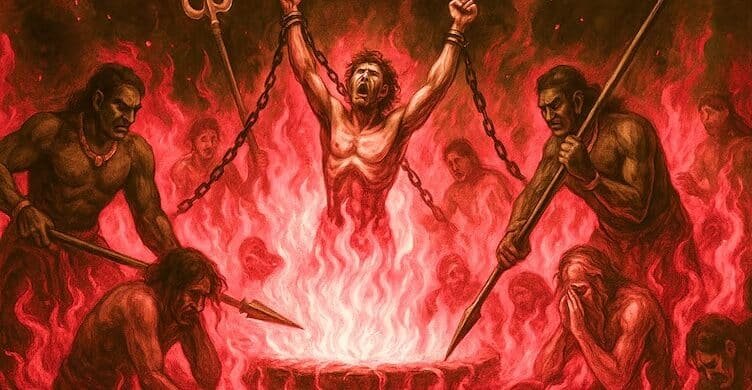 यह नरक सबसे कष्टकारी माना गया है। यहां पापी को लोहे की जलती हुई भट्ठियों में डाला जाता है। यमदूत त्रिशूल और भाले से उसे बार-बार छेदा करते हैं। वह मरता है, लेकिन पुनः जीवित कर फिर से जलाया जाता है, जिससे उसकी पीड़ा अनंत होती है।
