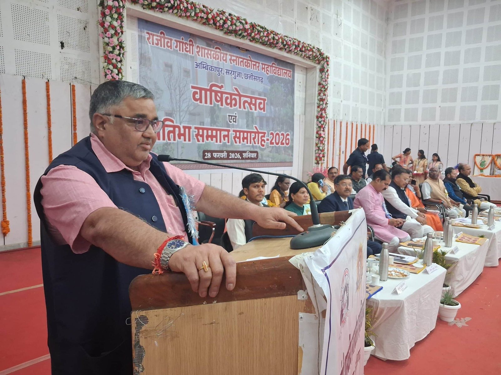 Ambikapur News : शिक्षा, संस्कार और प्रतिभा के संगम का भव्य दृश्य उस समय देखने को मिला जब राजीव गांधी शासकीय स्नातकोत्तर महाविद्यालय अंबिकापुर में वार्षिकोत्सव एवं प्रतिभा सम्मान समारोह 2026 गरिमामय वातावरण में सम्पन्न हुआ। समारोह में शैक्षणिक उत्कृष्टता के साथ-साथ सांस्कृतिक, क्रीड़ा एवं सामाजिक गतिविधियों में उल्लेखनीय प्रदर्शन करने वाले विद्यार्थियों को सम्मानित किया गया।