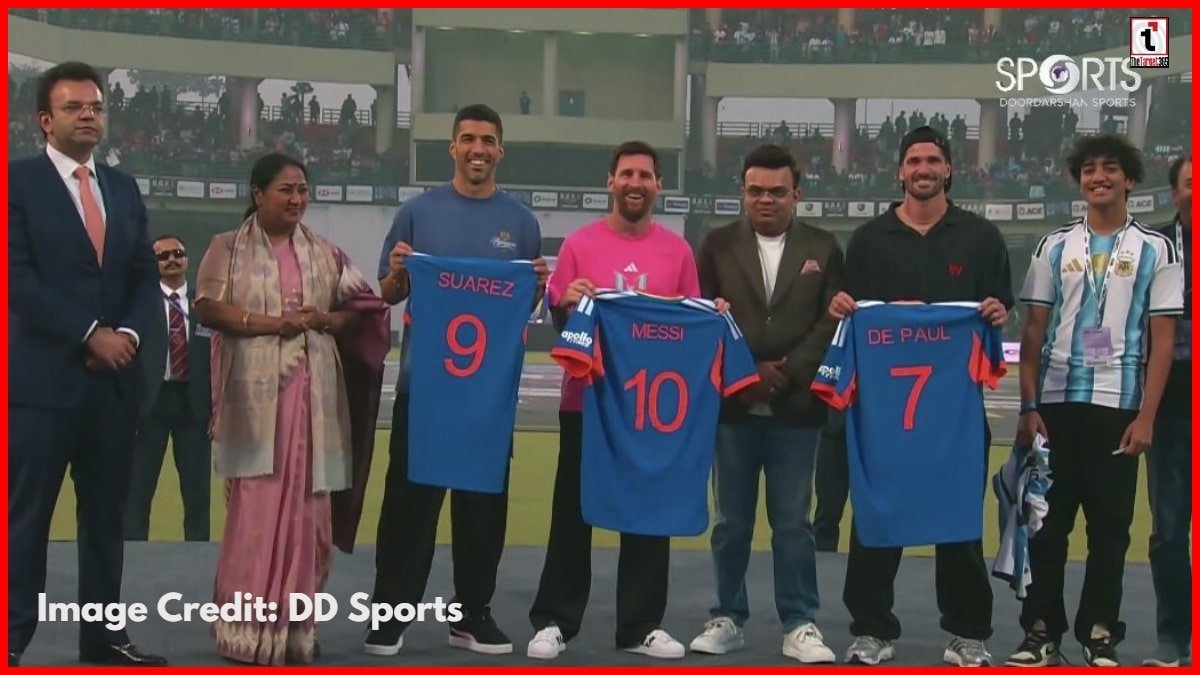 मुलाकात के दौरान, जय शाह ने लियोनल मेसी को एक खास ऑटोग्राफ किया हुआ क्रिकेट बैट भी उपहार में दिया, जिसने इस पल को और भी यादगार बना दिया। सबसे महत्वपूर्ण बात यह रही कि जय शाह ने मेसी को आगामी टी20 वर्ल्ड कप के लिए विशेष रूप से आमंत्रित किया। उन्होंने न केवल उन्हें आईसीसी टूर्नामेंट का एक टिकट भेंट किया, बल्कि एक और खास तोहफा भी दिया— आगामी टी20 वर्ल्ड कप की जर्सी, जिस पर बड़े अक्षरों में ‘मेसी’ लिखा हुआ था। इसके अलावा, मेसी के साथ आए उनके साथी फुटबॉलर सुआरेज को 7 नंबर की जर्सी और डी पॉल को 9 नंबर की जर्सी भेंट की गई।