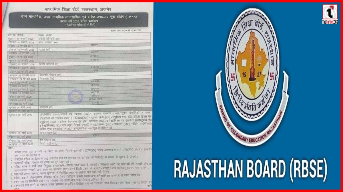 Rajasthan Board Exam Date: राजस्थान माध्यमिक शिक्षा बोर्ड (RBSE), अजमेर ने शैक्षणिक वर्ष 2025-26 के लिए कक्षा 10वीं और 12वीं की मुख्य परीक्षाओं का आधिकारिक कार्यक्रम (Timetable) घोषित कर दिया है। बोर्ड द्वारा जारी सूचना के अनुसार, प्रदेश भर में हाईस्कूल और इंटरमीडिएट की परीक्षाएं 12 फरवरी 2026 से एक साथ शुरू होने जा रही हैं। इस घोषणा के साथ ही प्रदेश के लाखों छात्र-छात्राओं का इंतजार खत्म हो गया है और वे अब अपनी तैयारी को अंतिम रूप देने में जुट गए हैं।
