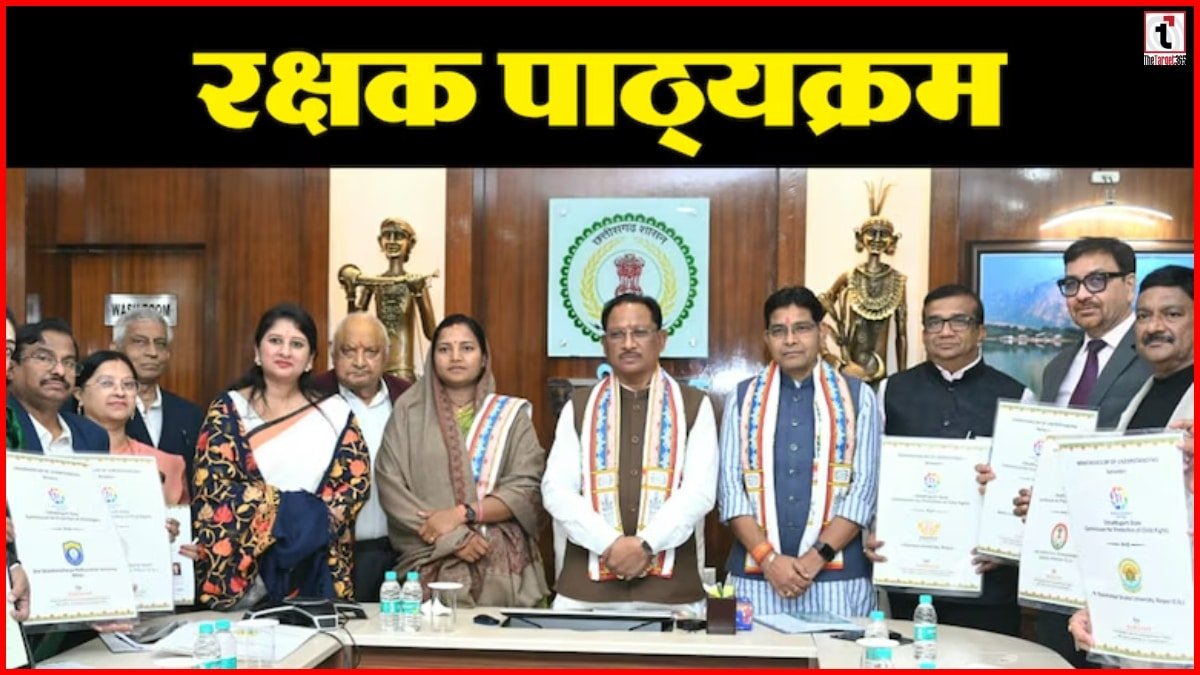 Rakshak Course: छत्तीसगढ़ के मुख्यमंत्री विष्णु देव साय (CM Vishnu Deo Sai) की गरिमामयी उपस्थिति में राजधानी रायपुर स्थित मुख्यमंत्री निवास कार्यालय में एक ऐतिहासिक पहल को मूर्त रूप दिया गया। छत्तीसगढ़ राज्य बाल अधिकार संरक्षण आयोग और प्रदेश के छह प्रमुख विश्वविद्यालयों के बीच “रक्षक पाठ्यक्रम” (Rakshak Pathyakram) को लागू करने के लिए एक समझौता ज्ञापन (MOU) संपन्न हुआ। बाल अधिकार एवं संरक्षण पर आधारित यह अनूठा पाठ्यक्रम, देश में अपनी तरह का पहला शैक्षणिक नवाचार है, जो युवाओं को विशेषज्ञता और रोजगार के अवसर प्रदान करेगा।