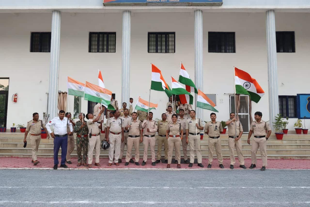 इस तिरंगा यात्रा में रक्षित निरीक्षक तृप्ति सिंह राजपूत, यातायात प्रभारी निरीक्षक अश्वनी सिंह सहित सरगुजा पुलिस के 75 से अधिक अधिकारी-कर्मचारी शामिल हुए। यात्रा के दौरान पुलिस के अनुशासन, उत्साह और देशभक्ति की भावना ने लोगों में गर्व की अनुभूति कराई।
