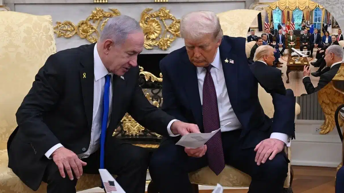 Trump Netanyahu Deal: अमेरिकी राष्ट्रपति डोनाल्ड ट्रम्प और इजरायली प्रधानमंत्री बेंजामिन नेतन्याहू ने व्हाइट हाउस में संयुक्त प्रेस कॉन्फ्रेंस में गाज़ा युद्ध समाप्ति के लिए एक व्यापक शांति‑प्रस्ताव का ऐलान किया। दोनों नेताओं ने कहा कि इज़राइल इस प्रस्ताव पर सहमत है और अब निर्णय हमास के हाथ में है — अगर हमास इसे स्वीकार करता है तो 72 घंटे के भीतर सभी शेष बंधकों की रिहाई संभव होगी, अस्वीकार करने पर इज़राइल पर आक्रमण जारी रहेगा और अमेरिका उसका समर्थन देगा।
